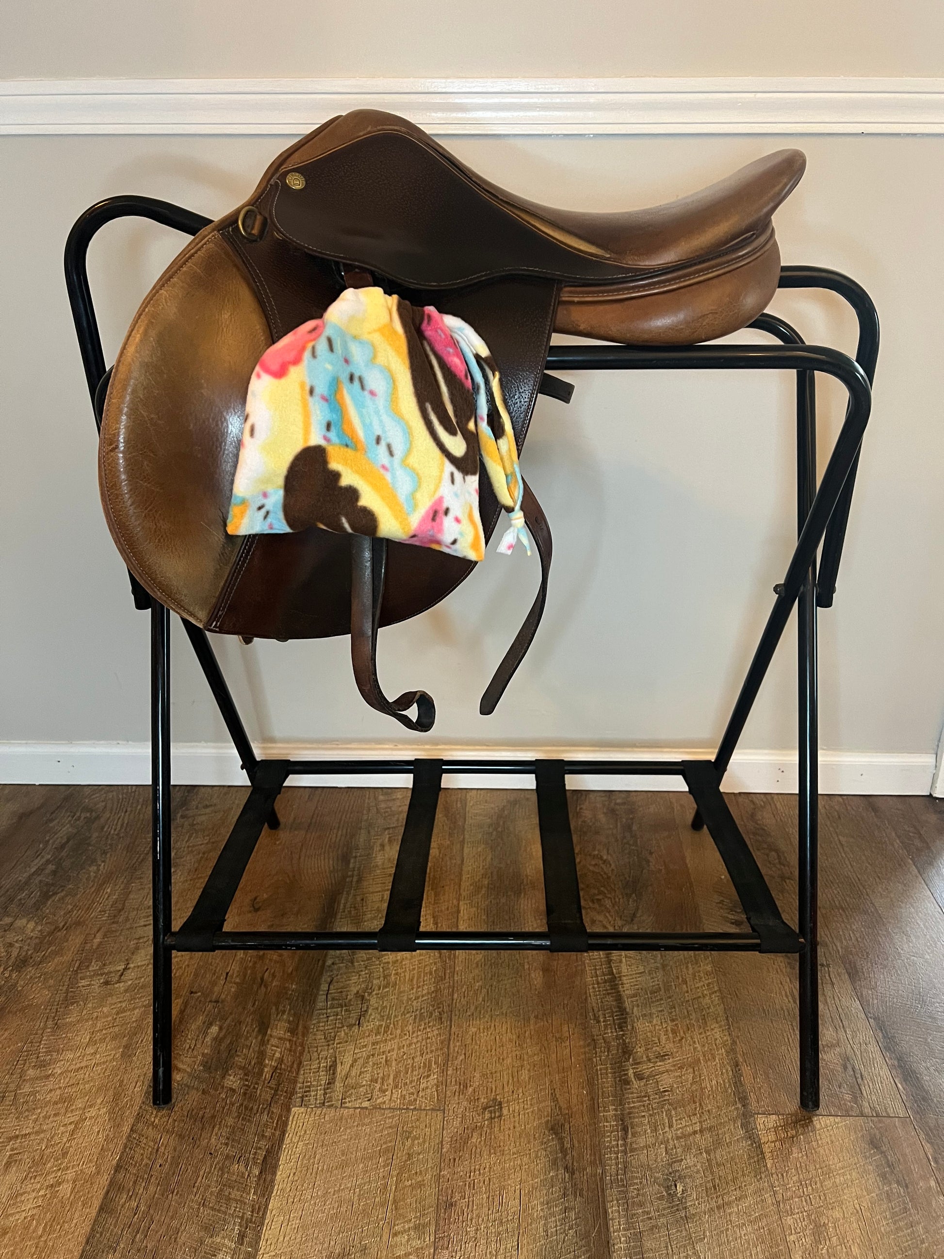 Stirrup Covers are the traditional individual pockets to hold your stirrups. The twist is the fun colors and patterns available. What this means to you is that you’ll be protecting your saddle from rubs. The real value is that you’re extending the life and safety of your tack. Cute and functional is what you really want isn’t it?