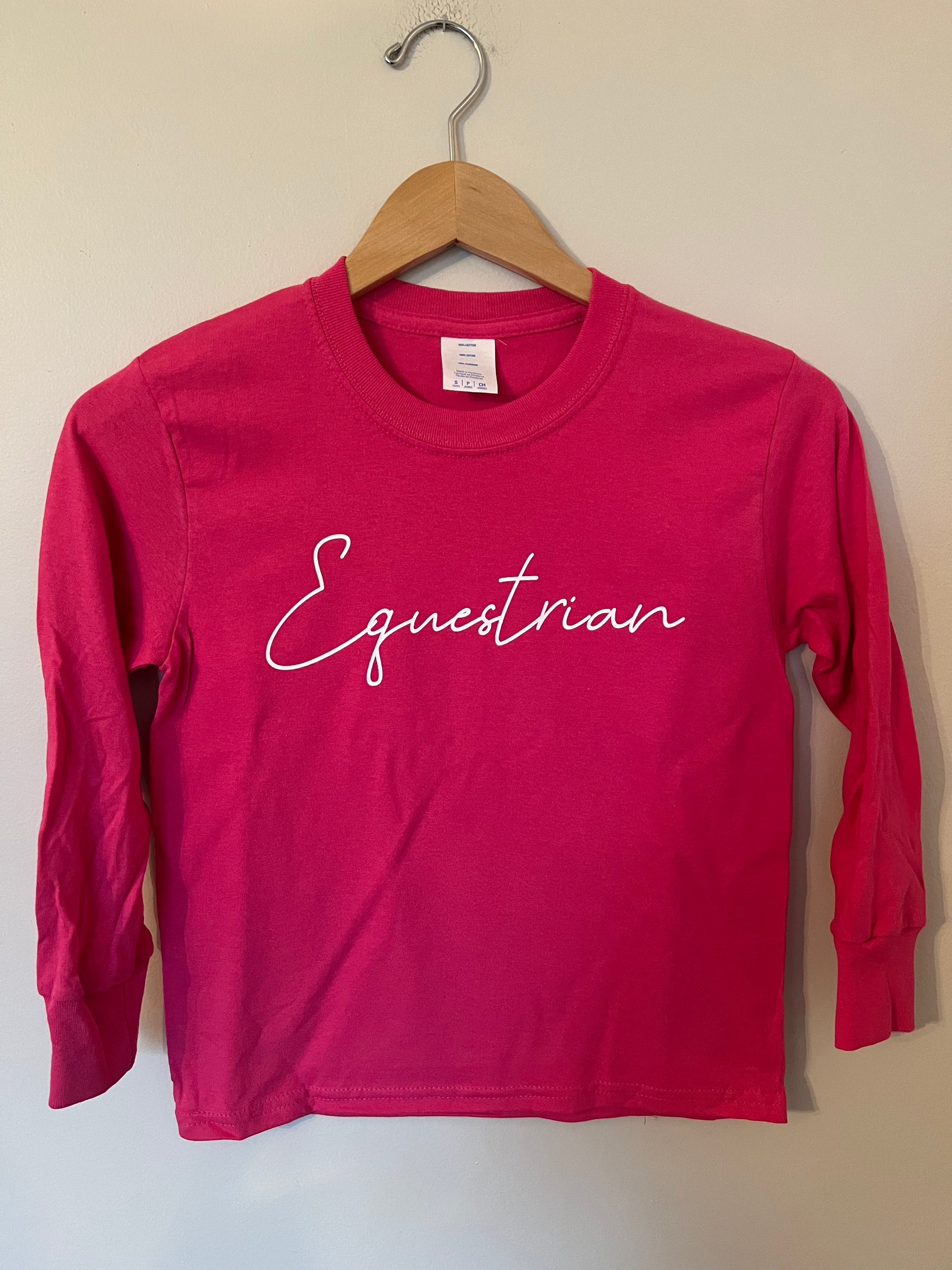 This is a pink long sleeve shirt that has Equestrian written across the chest.